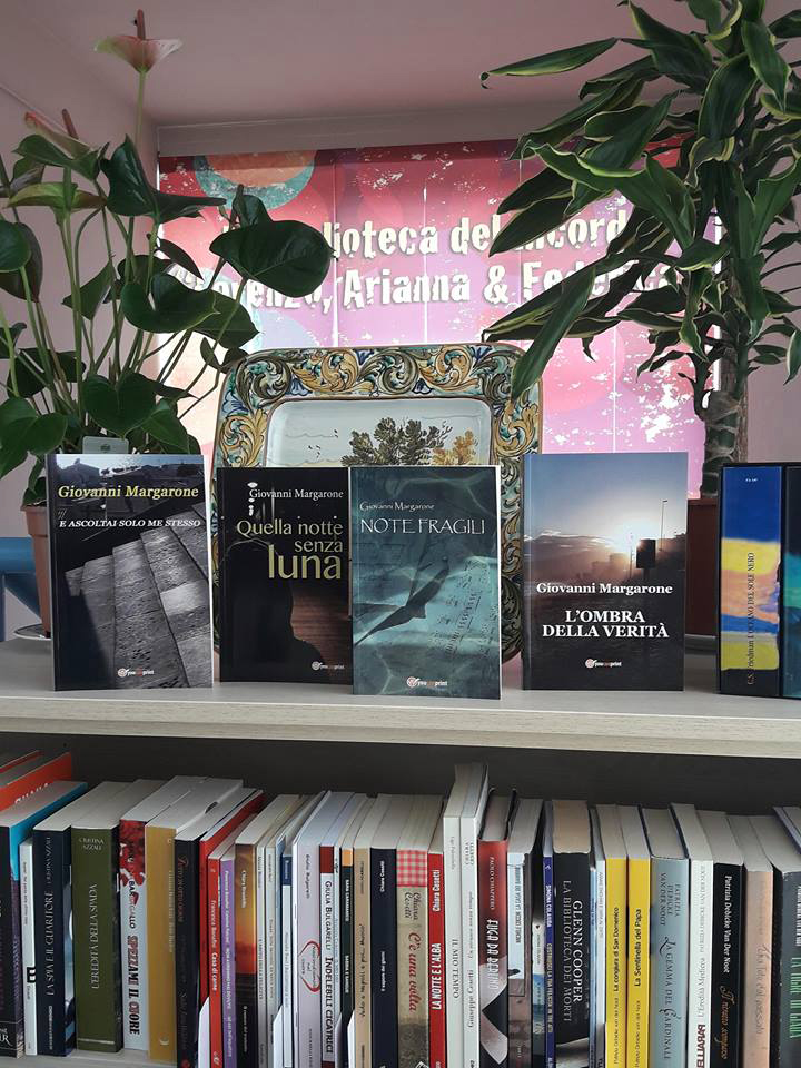 Su graditissimo invito del Responsabile della biblioteca, Sig. Corradino Scipioni, ho inviato in dono, in questo mese di giugno, le copie dei miei quattro romanzi che saranno catalogati nella “Biblioteca del Ricordo” di Montorio al Vomano (TE), istituita nel 2010 in memoria dei tre studenti universitari “Lorenzo, Arianna e Federica”, tragicamente scomparsi durante il terremoto dell’Aquila del 2009.